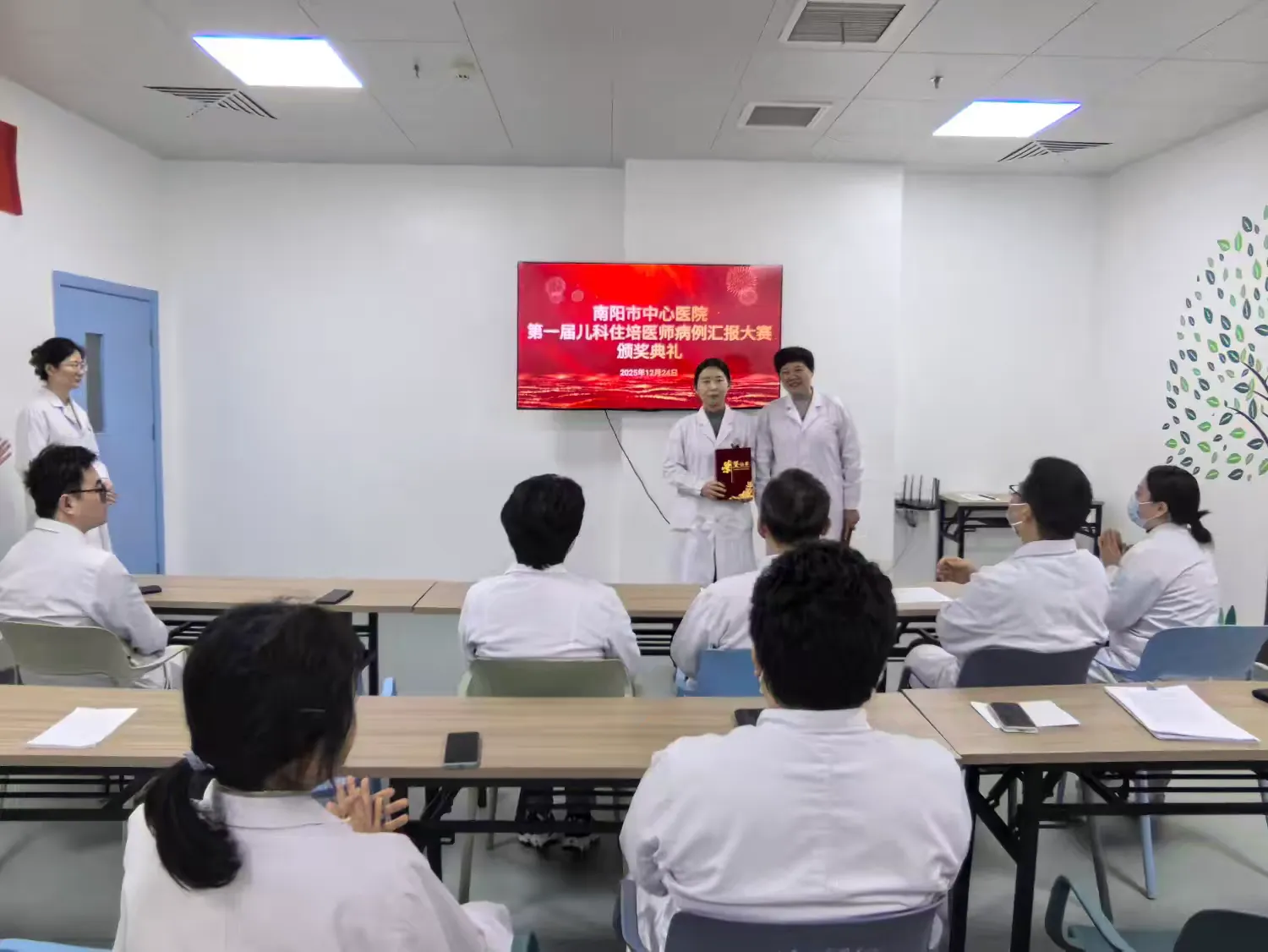 精研病例强本领,精进思维育良医。为进一步夯实住培医师临床基本功,提升临床思维能力、归纳总结及专业表达能力,南阳市中心医院儿科住培基地于2025年12月24日成功举办首届住培医师病例汇报大赛。教学科主任王霞参会并讲话,儿科基地主任赵丽丽担任主持,新生儿科主任医师齐玉敏、儿科基地教学主任张义堂、儿童神经内科副主任医师张淼担任评委专家,基地所有亚专业教学秘书和参赛学员指导老师参加。