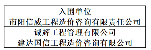 我院近期对南阳市中心医院工程造价咨询服务采购项目(项目编号:NYZXYY2026-FW-04)进行采购,经评标委员会评审,确定以下为入围公司,入围结果如下: