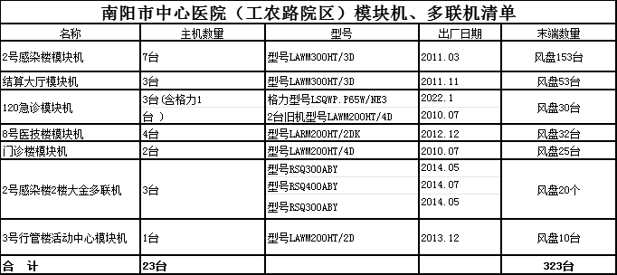 1.项目名称:南阳市中心医院模块机空调维保服务项目